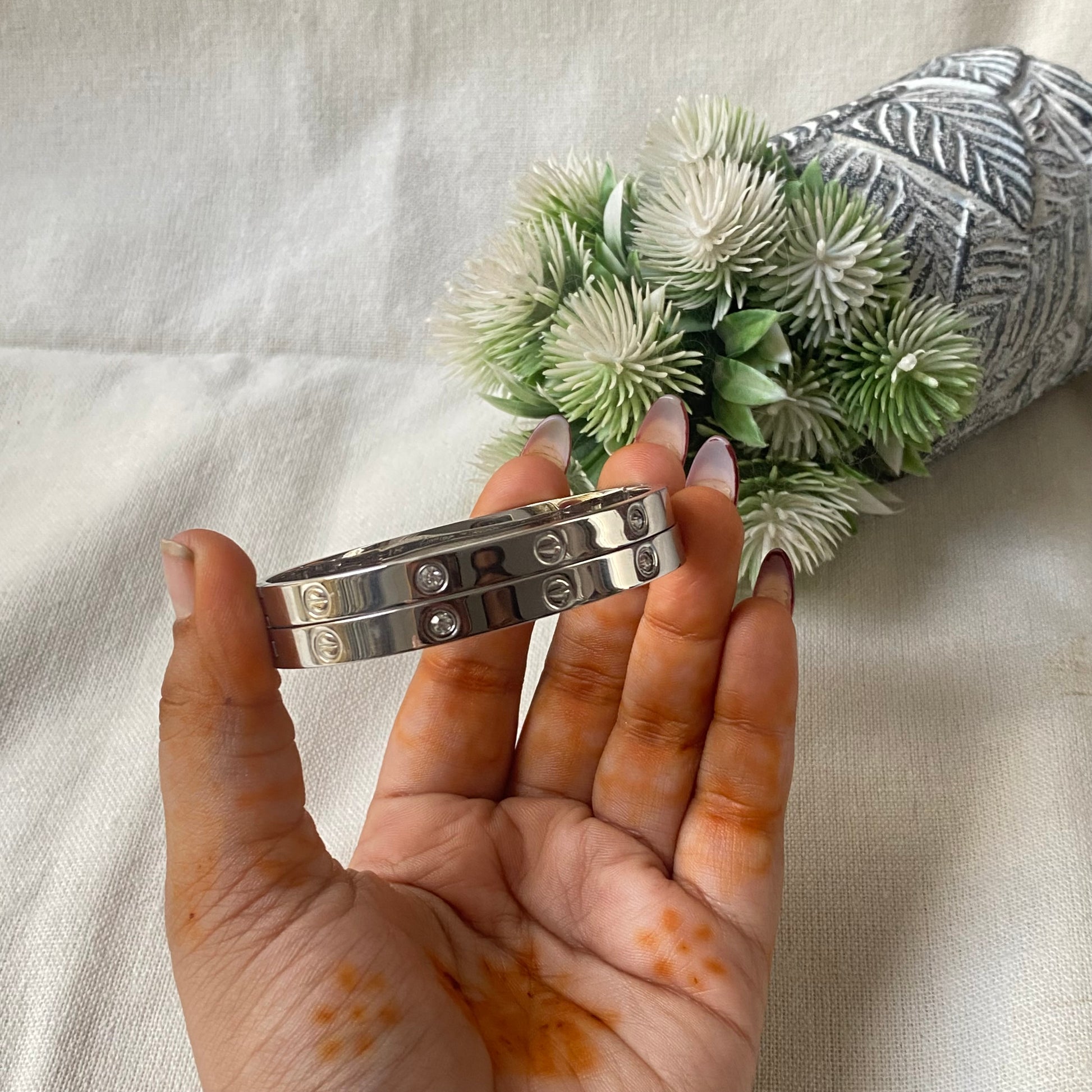 This Silver Cartier Anti-Tarnish Bracelet offers a 6-month warranty for added peace of mind. Featuring high-quality silver, this bracelet provides effective protection against tarnishing. Perfect for daily wear, this bracelet will maintain its shine over time, making it a great investment for any jewelry collection.