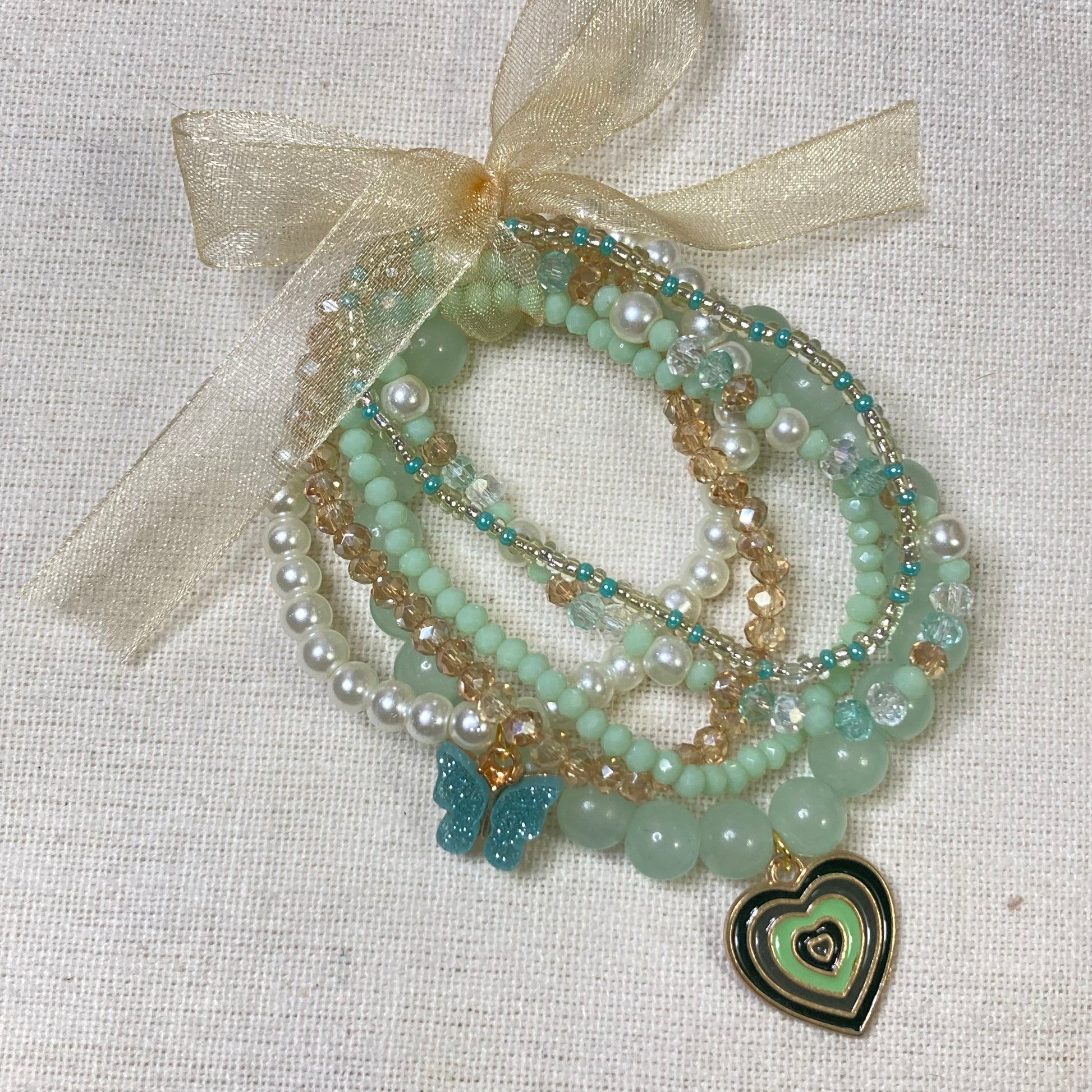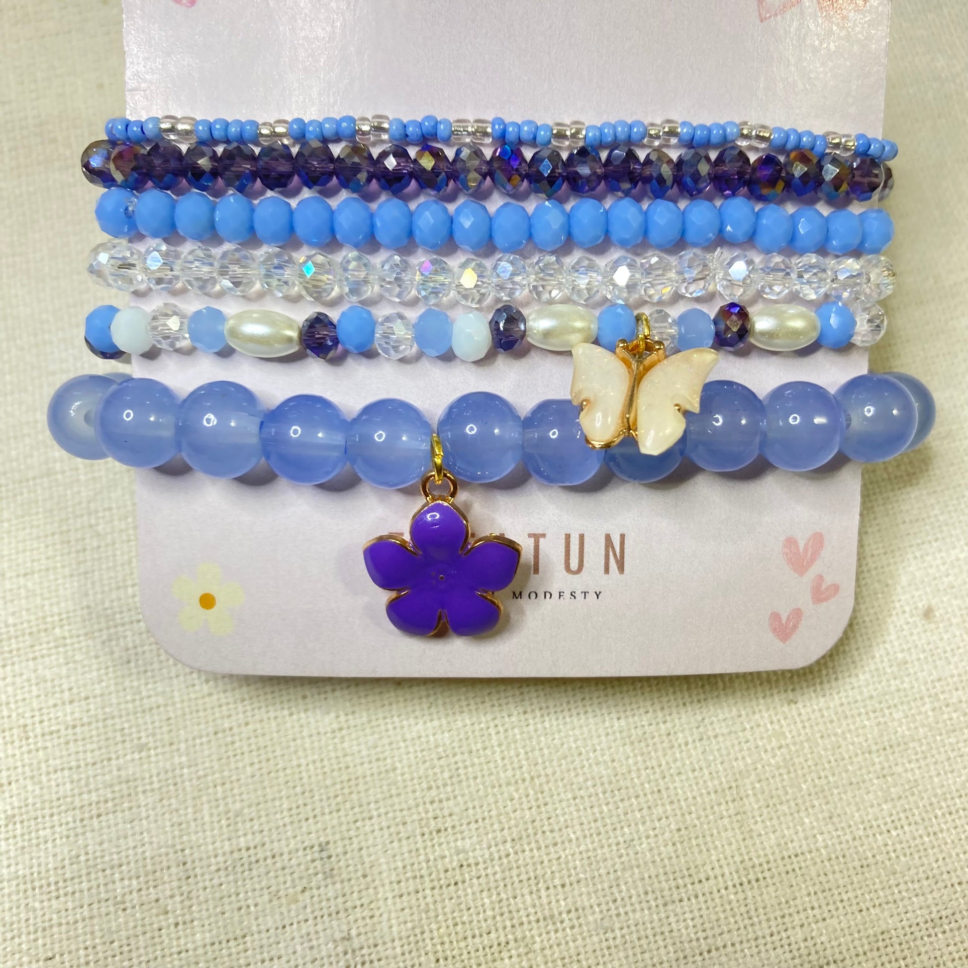 Wear your personality with our Stackable Bracelet with Charms set of 6 pieces. Designed to be layered together, these bracelets add a touch of sophistication and style to any outfit. Made with high-quality materials, these versatile pieces can be mixed and matched to create endless combinations. Elevate your accessory game with this must-have set.