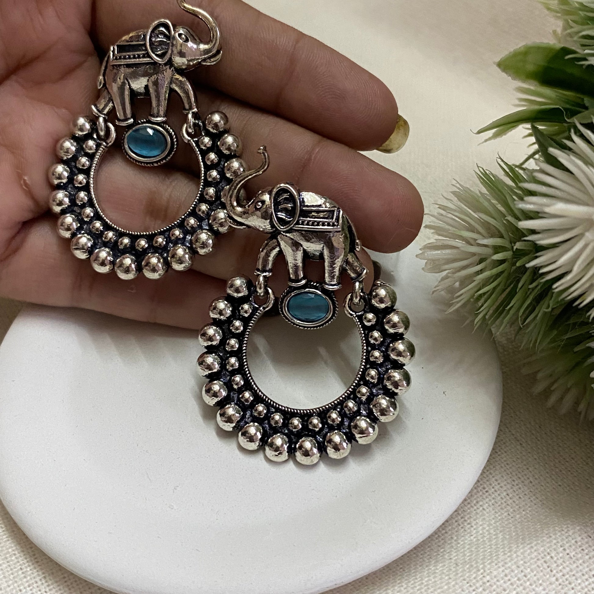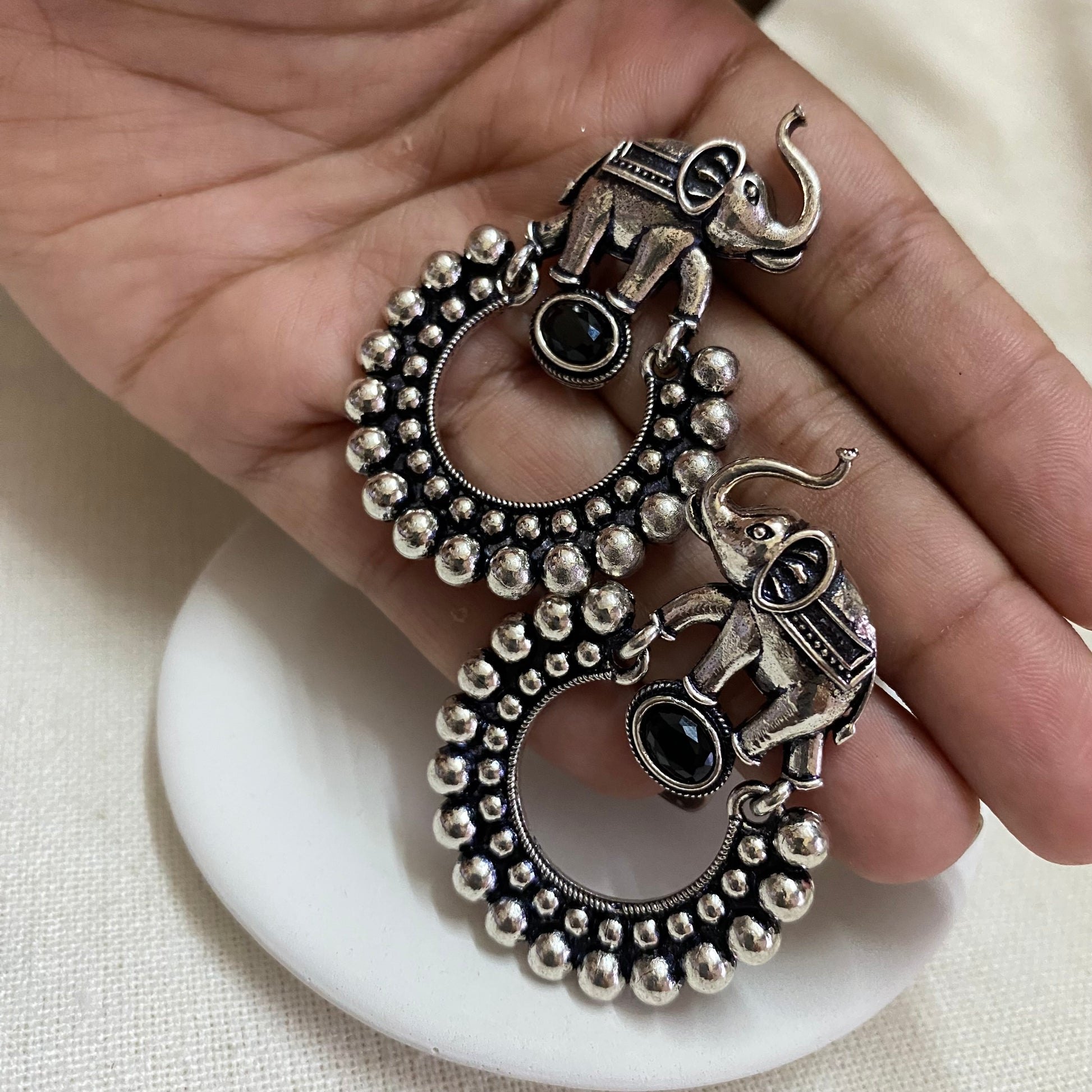 Discover a one-of-a-kind pair of earrings that boast a unique oxidised design. With its distinctive style, these earrings are the perfect statement piece to elevate your look. Made with high-quality materials, these earrings are sure to catch the eye and add a touch of sophistication to any outfit.