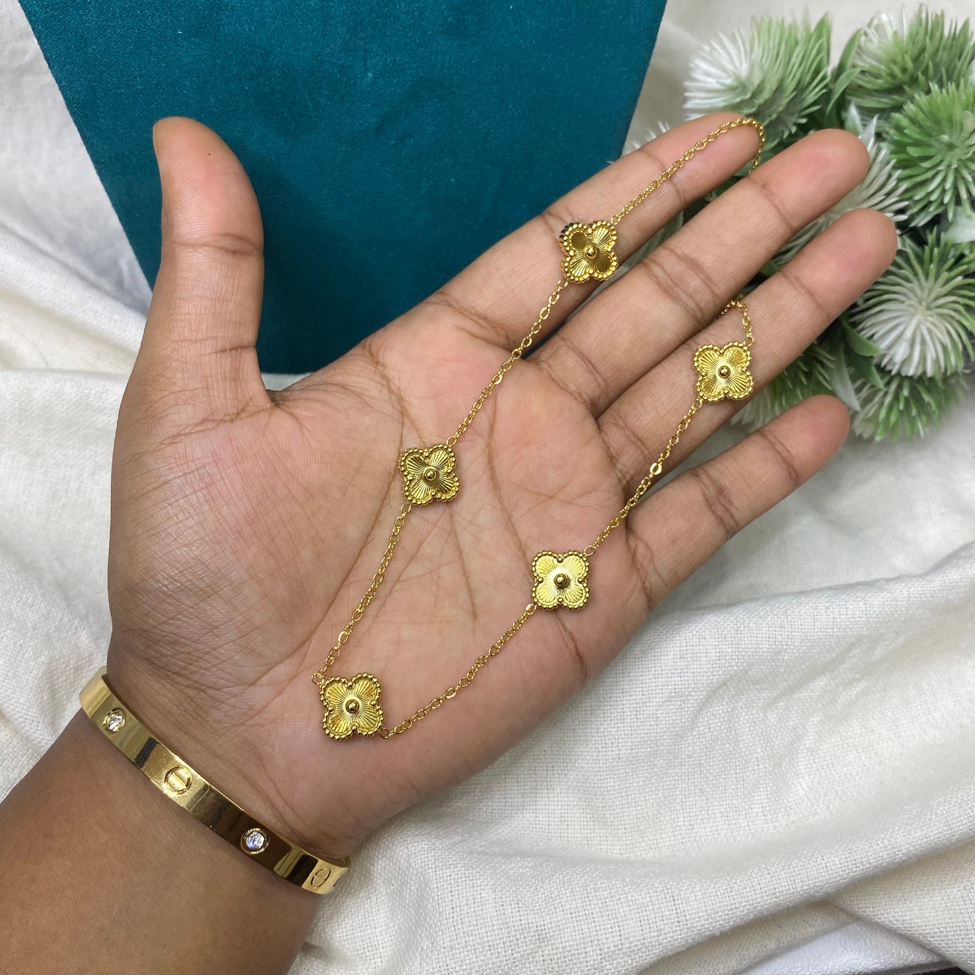 This Van Cleef Necklace is both trendy and elegant, making it the perfect accessory for any outfit. With a 6-month warranty, you can wear it daily without worrying about tarnishing. The anti-tarnish feature ensures long-lasting beauty.