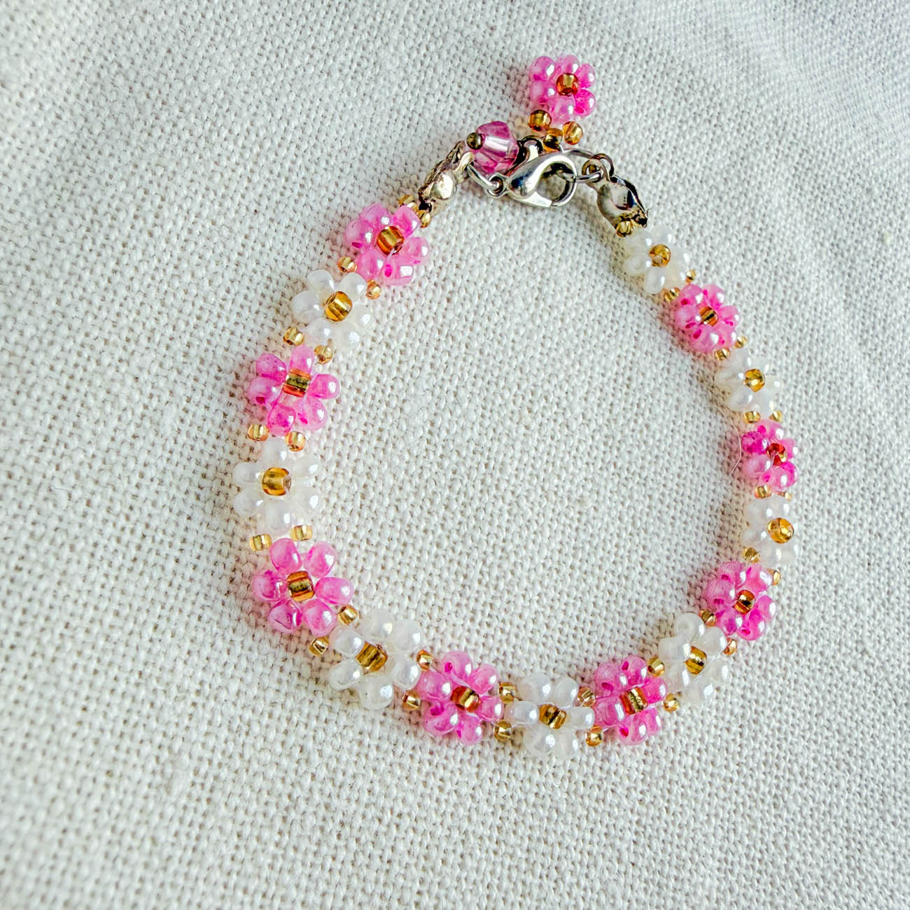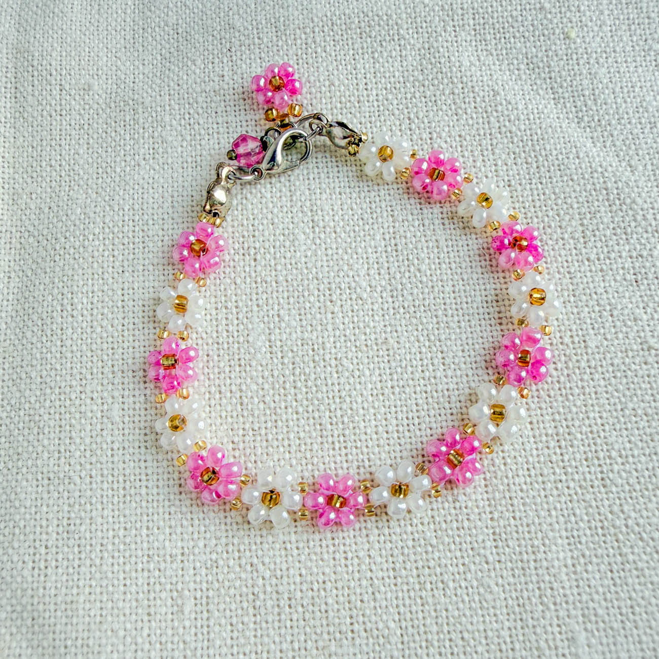 Handmade daisy bead bracelet